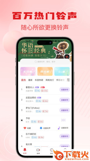 【海量曲库】铃声、手机铃声、彩铃曲库拥有当下热歌铃声、手机铃声、彩铃潮曲,还囊括每个年代的经典歌曲铃声、手机铃声、彩铃,任你自由选择铃声、手机铃声、彩铃;