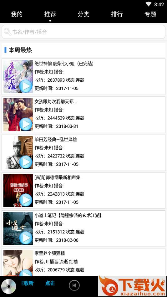 玄幻,武侠,恐怖,情感,军事,历史,相声,广播剧,百家讲坛,丰富多彩的视觉盛宴,快来试试吧!