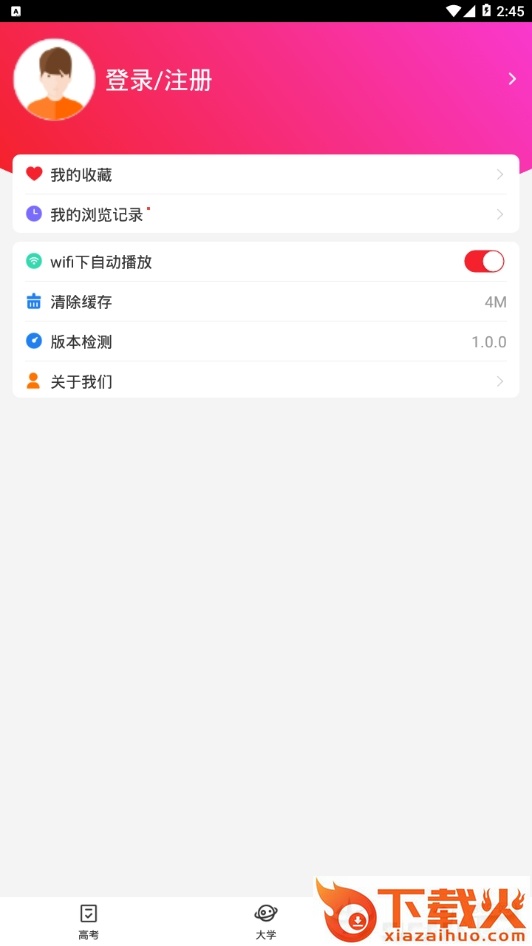 高考视频app,一款集合了高考咨询,高考指南,高考人物,大学宣传片为一体的视频平台,为广大学子推送最新的高考周边新闻,助每一位学生了解大学,走进大学!