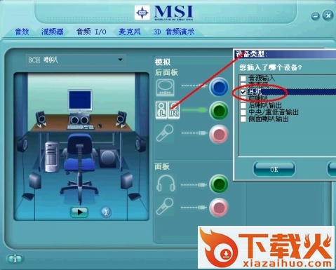 方法: 选择“音频I/O”并点选管理面板右上“扳手图标”,在弹出界面中钩选“禁用前面板插孔检测”并 单击“OK”键确认。