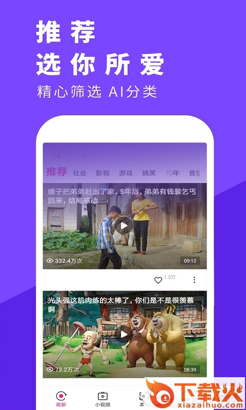 花火视频app,覆盖了社会、影视、游戏、搞笑、70年、音乐等各类短视频,让大家用看视频的方式看新闻、享娱乐,是一款在线小视频分享类软件。