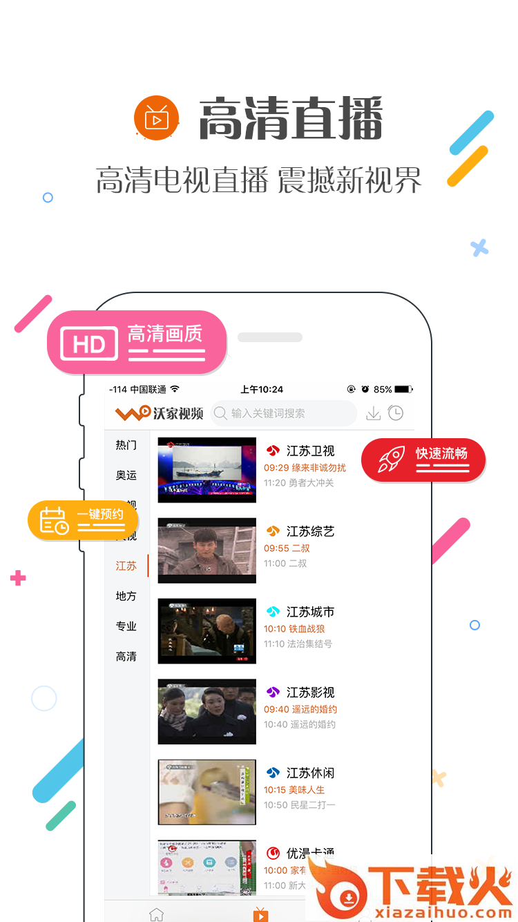 轻松看高清直播“沃家视频”,与电视直播同步,看精彩赛事、追最新热剧