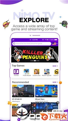 Nimo TV直播平台是一款多功能的手游直播平台,和虎牙直播倾力合作,打造数字化直播新体验!这里不仅有优质的主播24小时在线直播,