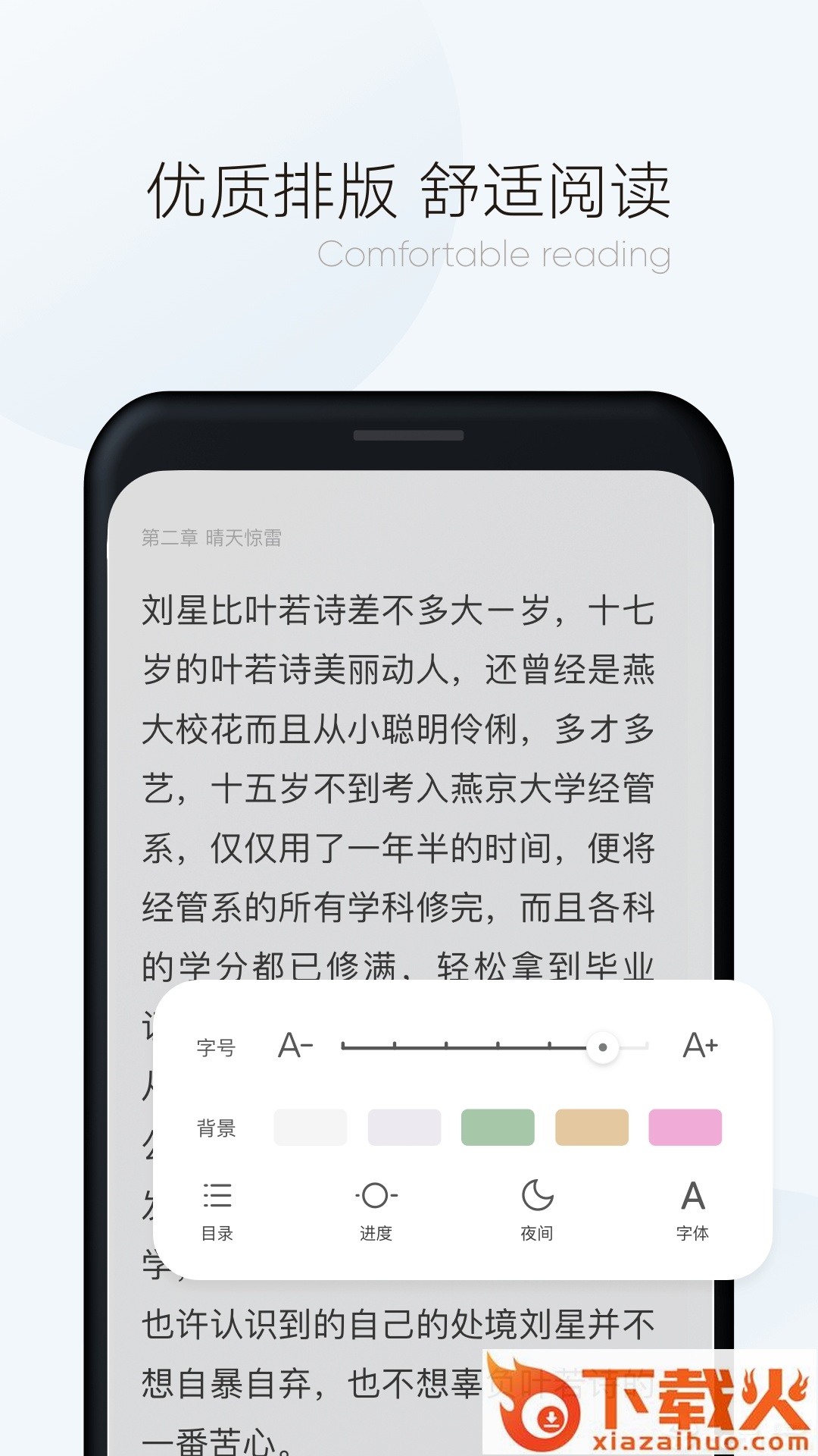 界面简洁、简化看书过程的繁琐操作,个性化阅读设置,为你提供更好的阅读体验