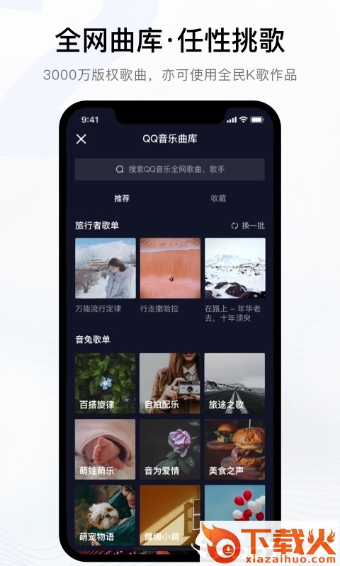 全网曲库,借助QQ音乐的强大支持,配乐与歌词都变得随心所欲。