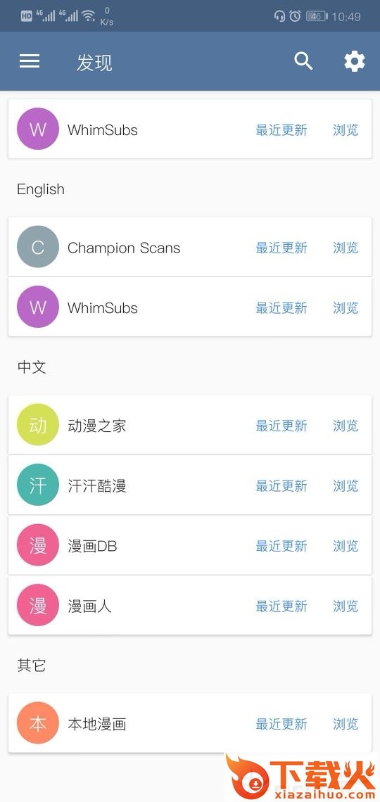 Tachiyomi是一款资源丰富的漫画阅读器,是一款可以开源的免费漫画,支持扩展,拥有的漫画平台丰富,而且整个界面的设计还蛮简洁的,支持的漫画平台多可以快速搜索你喜爱的漫画,超快的更新速度。