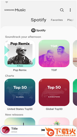5.三星音乐显示来自Spotify的播放列表推荐。您可以通过Spotify标签找到Spotify推荐音乐,然后搜索自己喜欢的Spotify音乐。