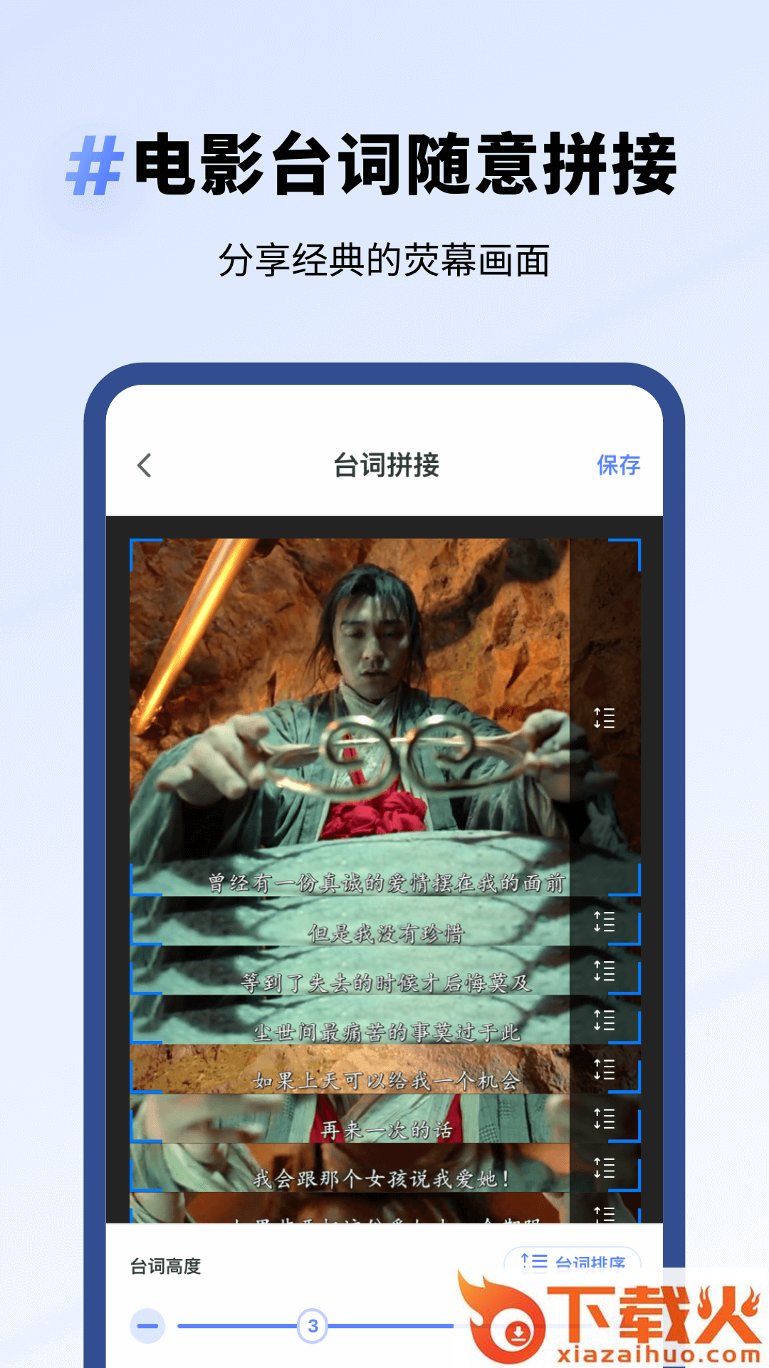 多段精彩台词自由拼接,让你记录分享经典的电影台词和画面