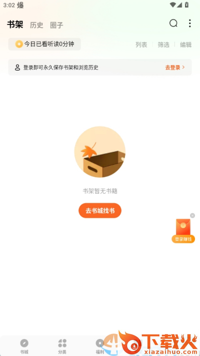 5、点击下方的书架选项能够查看添加到书架的书籍,登录账号可以永久保存书架和浏览历史,再也不用担心数据丢失了。