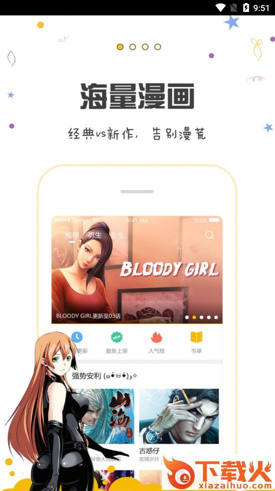 上万部各类题材漫画实时连载,恋爱漫画、热血漫画、腐漫画、武侠漫画、冒险漫画、科幻漫画、战争漫画、同人漫画、内涵漫画、治愈漫画、
