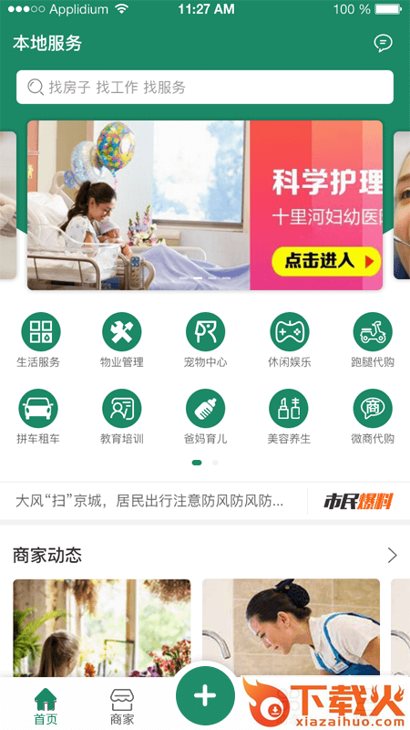 1. 首页广场:涵盖大部分生活所需的服务,商家可以通过发帖的形式宣传自己,普通用户也可以同过发帖的形式,