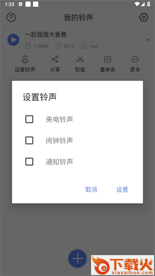 3、最后勾选上来电、闹钟、通知铃声后点击【设置】即可;