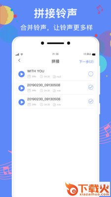 2、音乐合成:导入多首歌曲,按照顺序拼接成一个铃音。