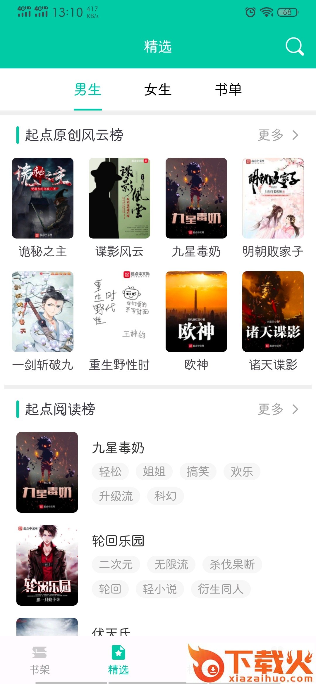 超大书架:书架包含自带图书、最近阅读等图书!