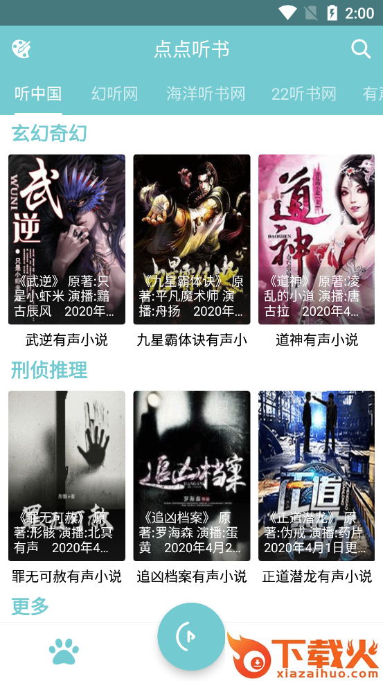 1、点点听书囊括了主流的十几个听书网站的源,可以说只要是真人朗读的有声小说作品都囊括其中了。