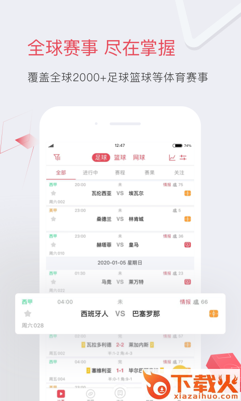超全的赛事数据,全球超过200个国家或地区,1000多个各级赛事各类足球、篮球赛事的比分直播!