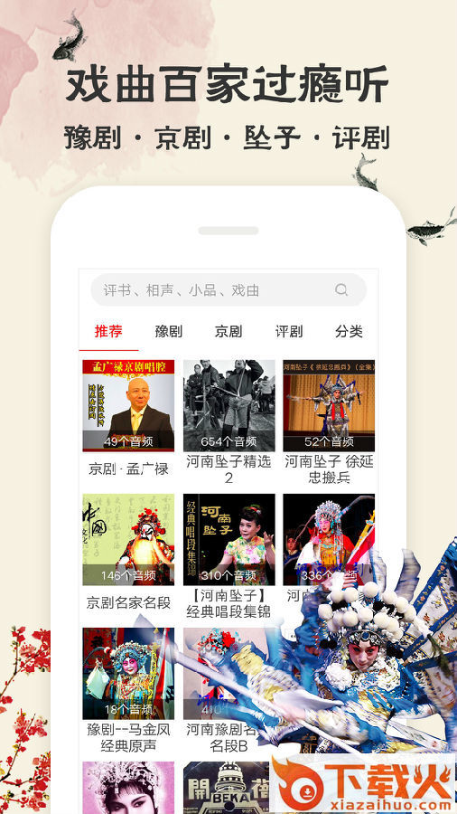 经典豫剧、京剧、秦腔、评剧、晋剧、越剧、昆曲、淮剧、川剧、黄梅戏、二人转、梆子等众多曲种经典名段;穆桂英挂帅、朝阳沟、关汉卿、孟丽君、打金枝、花木兰、贵妃醉酒、铡美案、白蛇传、苏三起解等众多名曲全都有。