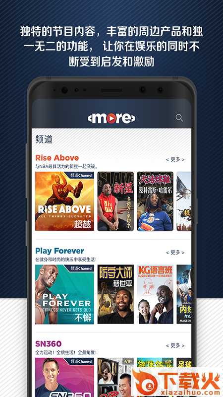 MORE是一个突破性的体育视频平台,为中国体育迷量身打造数以千计的NBA球星独家视频,每一个精心设计的频道都将呈现新奇的节目,带你走进你最喜欢的体育明星们各式各样不为人知却精彩的场下和幕后故事,另外视...