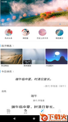 提供每日诗词、历史上的今天、每日一句、精选美文等丰富的阅读功能,利用碎片时间提升文化底蕴,带来精神享受。