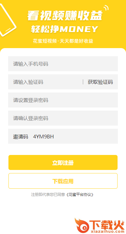 花蜜短视频app,每天观看短视频,在收获欢乐的同时赚收益。来花蜜短视频,挂机刷视频,赚取更多零花钱,玩法简单,推广还能赚分红,提现轻松赚钱多,每天利用空闲时间赚零花。