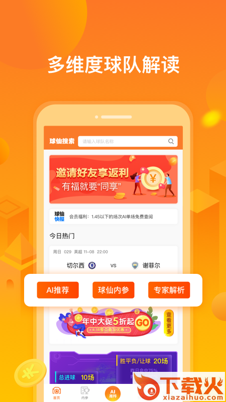 小球仙是一款非常实用的体育赛事解析软件,软件功能非常强大,这里提供球队解读、AI预测免费、算法预测、比分直播等多种功能,更新及时,能够让你实时掌握最新情报。软件操作便捷,感兴趣的朋友快来下载吧!