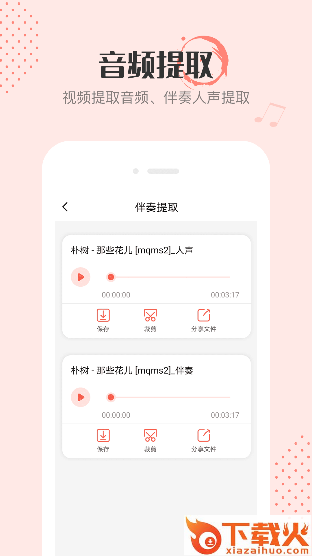 【伴奏人声提取】可以将音频文件中的人声和伴奏部分提取分离。