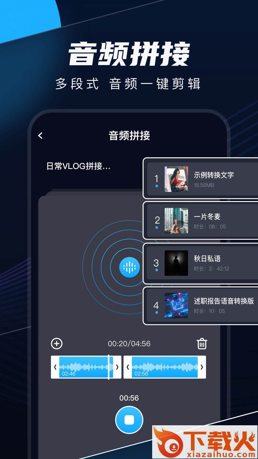 录音剪辑,手机专业的音频剪辑助手,支持音频拼接、编辑、录音转文字等功能,随时随地在线录音,轻松编辑手机内音频文件,让记事、音频剪辑更轻松。...