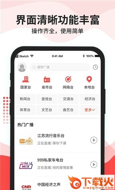 1、热门电台、音乐、新闻、交通及生活资讯,24小时直播,掌握流行尽情享受自我。