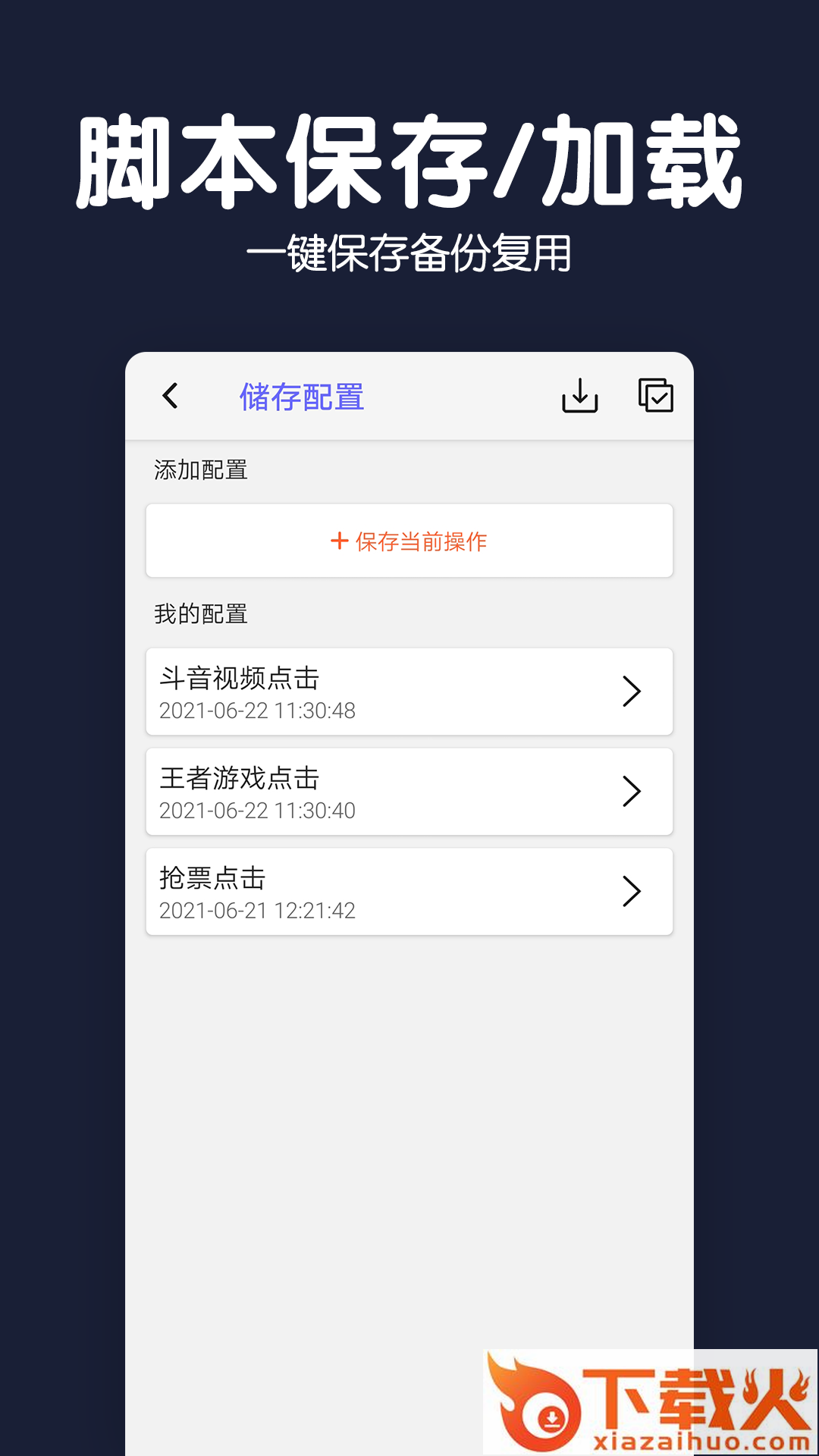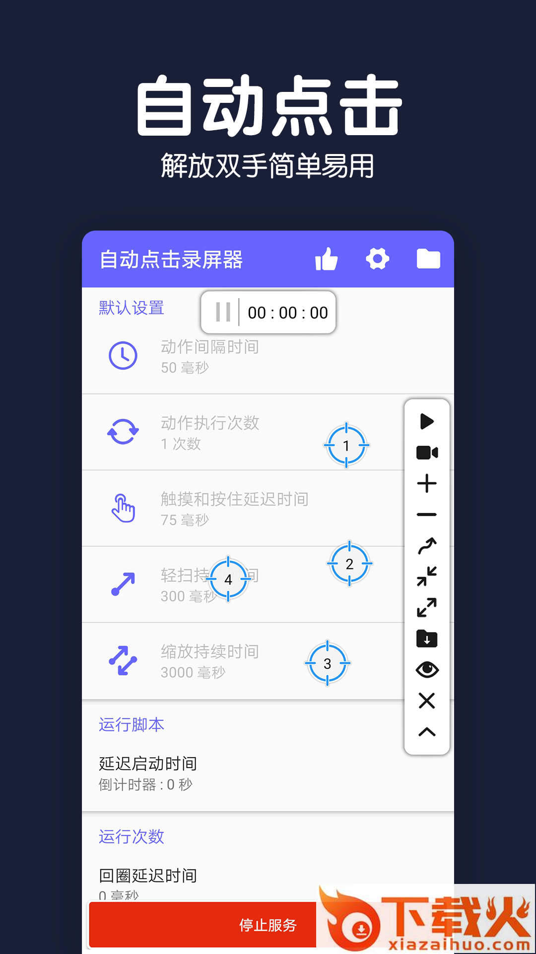 自动点击录屏器是一款记录手势和点击操作轨迹的软件,这是无需root权限的自动点击器,它可以替代双手辅助你在手机屏幕界面点击的加速器,录屏脚本保存,可随意使用。