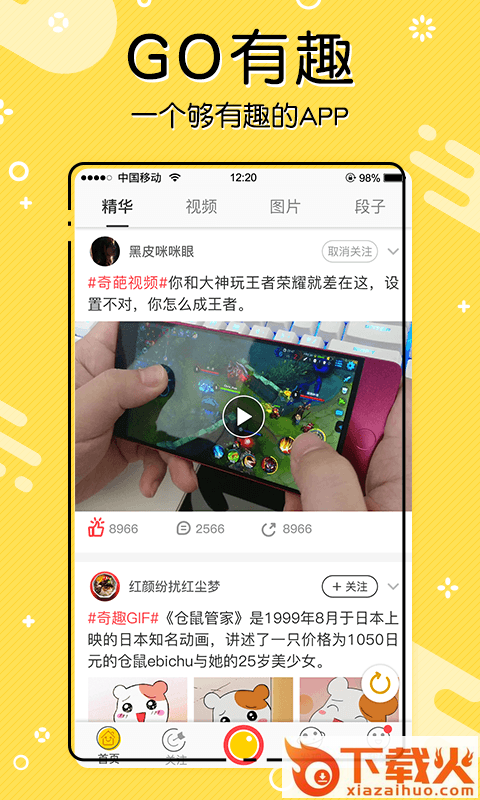 GO有趣是一款汇聚搞笑视频、爆笑图片和内涵段子的娱乐阅读APP,让您在通勤碎片时间享受片刻乐趣。与此同时,如果您是天生的段子手或街拍达人,还能即兴创作视频、图片和段子内容分享到GO有趣,向更多人分享欢乐。