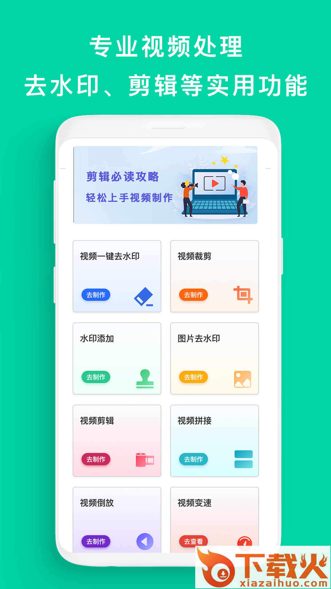 去水印帮是一款非常专业的去除水印的手机软件,软件功能十分全面,你可以使用软件进行视频剪辑、去水印、添加水印、拼接视频等,操作便捷,并且免费,能帮助你高效剪辑视频,有需要的朋友快来下载吧!...