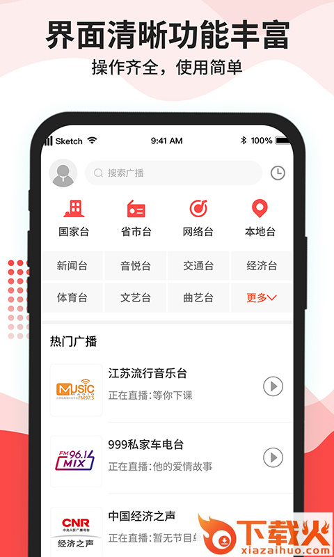 1、热门电台、音乐、新闻、交通及生活资讯,24小时直播,掌握流行尽情享受自我。