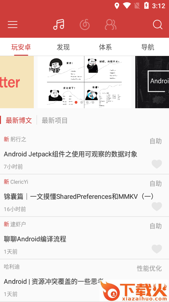 干货闲读、每日推荐、玩安卓、热映榜。