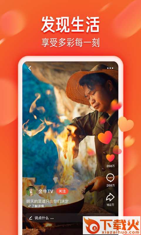 这里有各种圈子达人-冲浪者、旅行家、建筑师...每个人在这里展示才艺、创意;发现你喜欢的人,发现喜欢你的人,让火山根据算法定制你专属的视频内容,新鲜永远刷不停!
