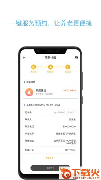 可以通过app线上发布上门服务需求,一键发布,在app中查询订单情况;