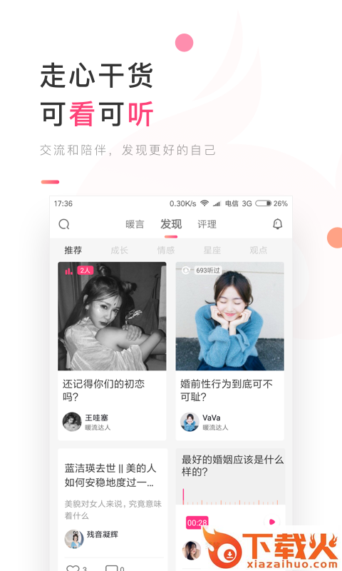 暖流app下载,人越长大越孤单,在这里有更多温暖的声音和有趣的事情,通过暖流app和更多小伙伴交流互动,治愈彼此的心灵,感兴趣就来了解一下吧!...