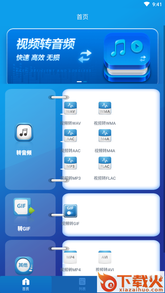 视频转音频不仅支持转换音频,也支持转换gif,转换各种视频格式转换。支持快速的视频转换、音频提取功能、gif转换功能。其操作极其简单,且转换后的文件可以保存到您的手机中。