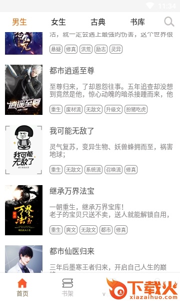 热门分类:男频/女频,涵盖都市、言情、玄幻、武侠、穿越、悬疑等分类。
