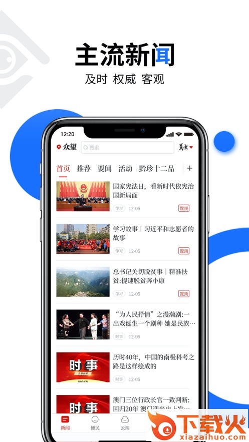 ①在手机应用程序商城搜索“众望”或扫描右侧二维码下载APP;