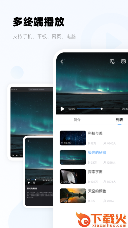 新拓云点播App,支持多终端播放,支持多样化点播方式,提供了视频加密保护,并可以同步播放视频课件,是依托音视频技术打造的,融合多场景的音视频点播服务平台。...