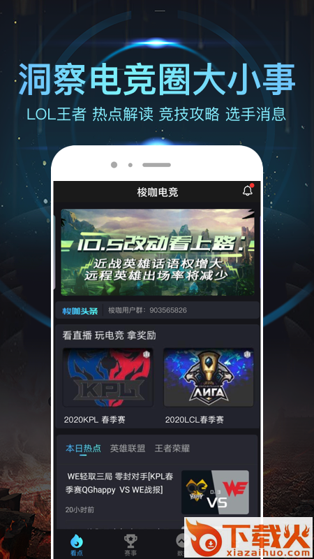 聚焦国内外热门联赛,提供一手电竞圈快报。实时掌握电竞比赛信息,俱乐部、战队、选手动态,竞技攻略、活动等及时动态,更多独家报道和新鲜看点等你发现。