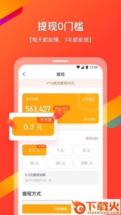 【0门槛提现,0.3元都能提】