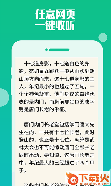 听小说、听音乐、听段子、听电台、听评书、听儿歌、听故事等充分利用碎片时间,开车不再只收听电台,走路不再只收听歌曲,网络小说不只在手机上收看,一切的一切,让它成为你的手机随身听!