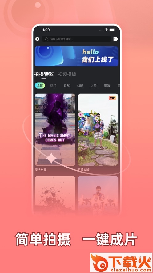 选择特效,一键录制视频!可自定义特效内容,一键成片!