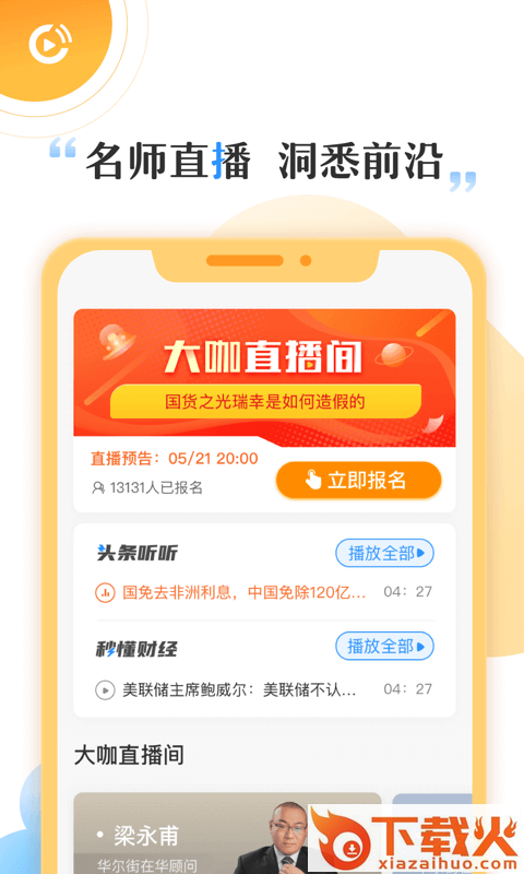 1、大咖直播:每天跟随直播名师探索财经知识,洞悉理财前沿