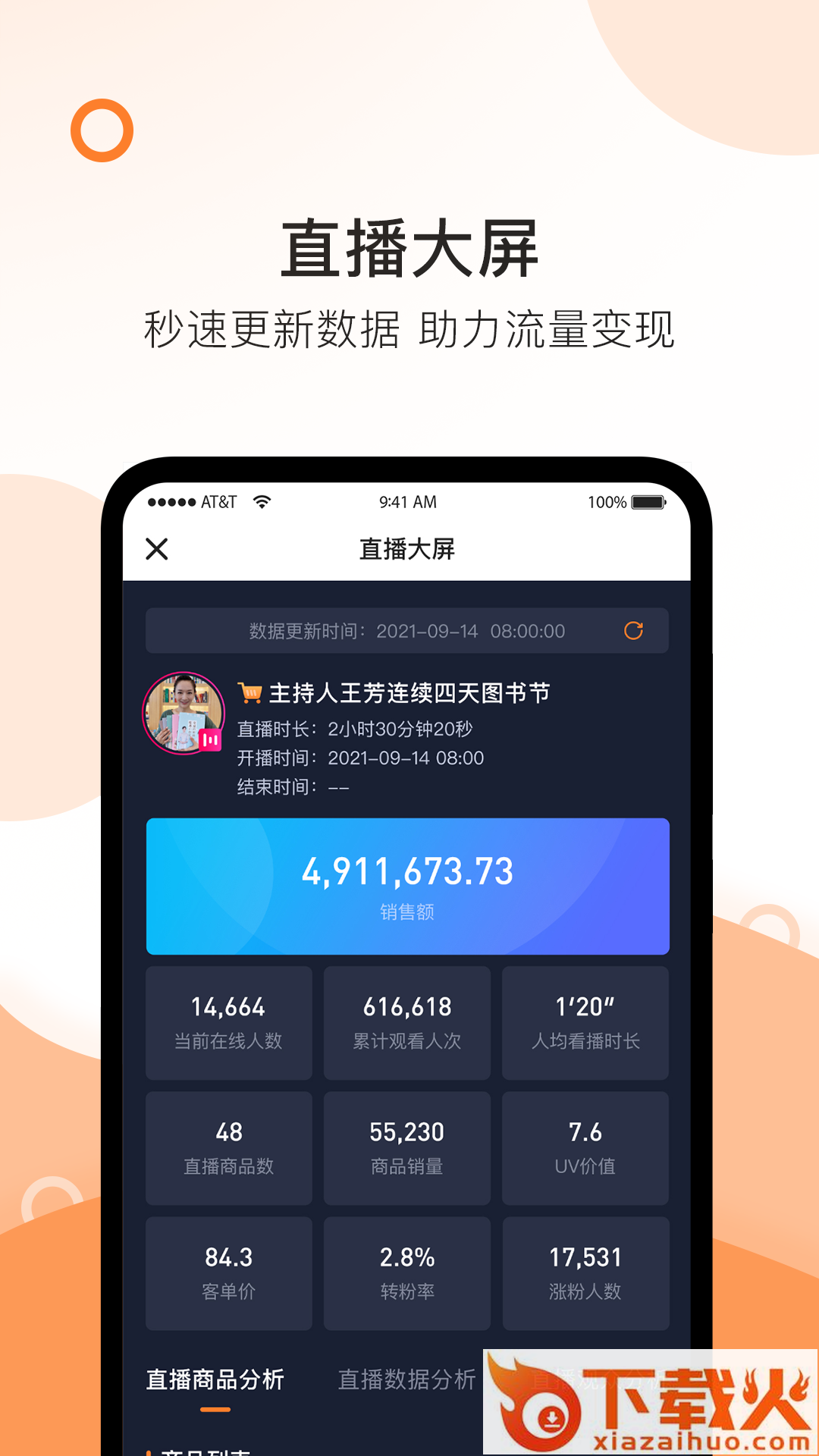 掌上精选app是一款专业的一站式带货数据分析服务工具。用户能够通过软件实时在线分析每天的直播带货数据,了解带货情况,更好的进行营销安排,提高带货效率。