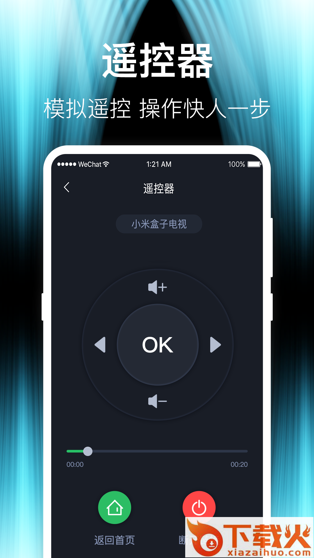3、模拟遥控器,完成投屏后能够将手机虚拟成遥控器,远程来控制。