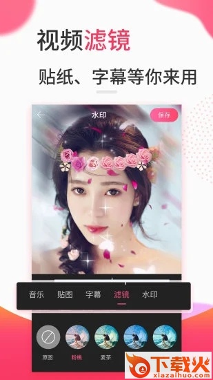 一键拥有 特效滤镜、贴纸、背景音乐;