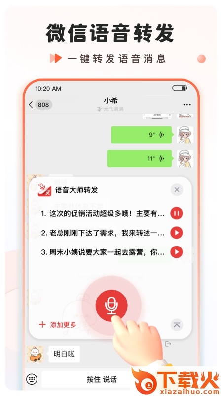 提供更方便的分享功能,在导出语音后一键进行转发和分享;