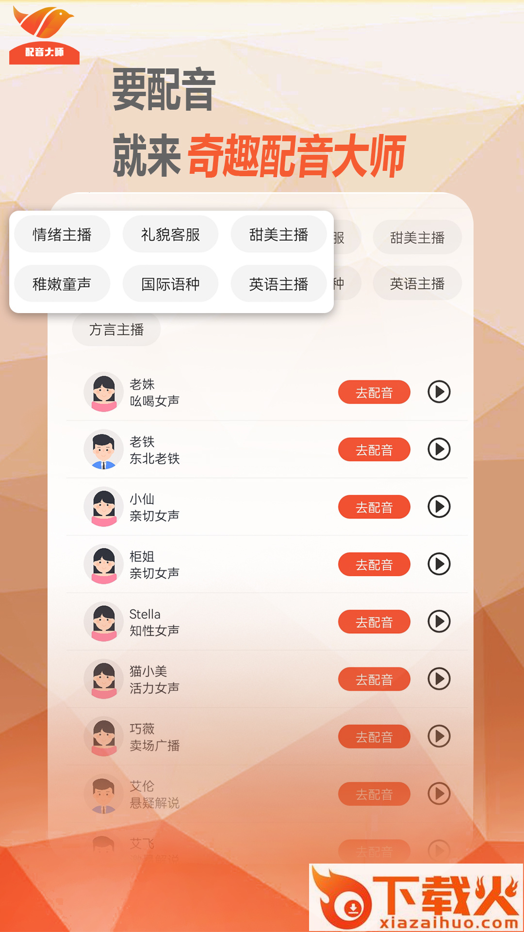 奇趣配音大师app是一款文字转换语音工具,软件可以帮助用户一键视频配音,功能强大,使用简单方便,觉得不错的朋友欢迎前来下载使用。